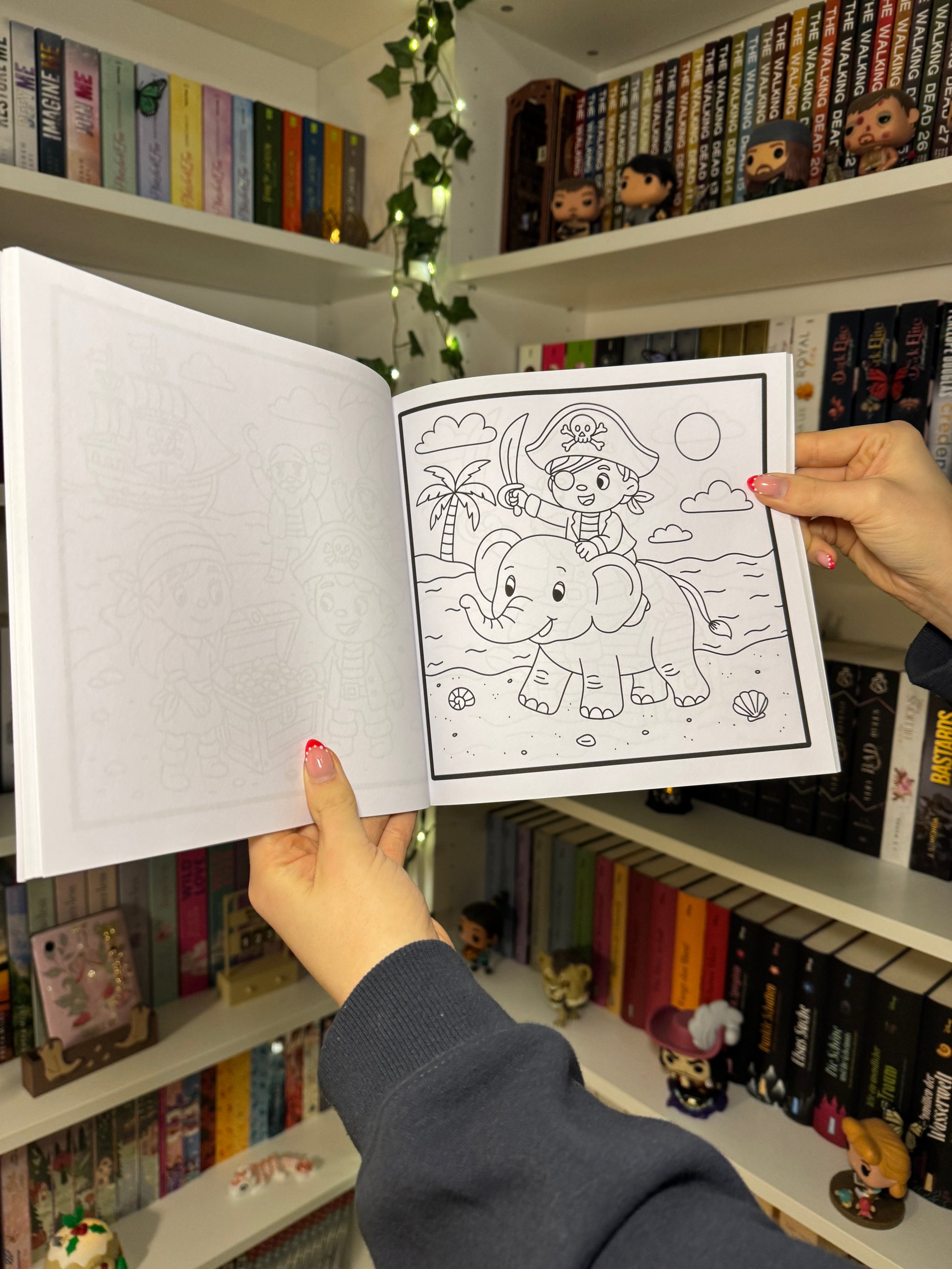 Tauche ein in eine zauberhafte Piratenwelt voller Schatztruhen, Palmeninseln und geheimnisvoller Karten! Dieses liebevoll handgezeichnete Malbuch wurde mit viel Herzblut ohne KI komplett selbst gestaltet. Jede Seite ist ein kleines Abenteuer, das nur darauf wartet, mit Farbe zum Leben erweckt zu werden.
